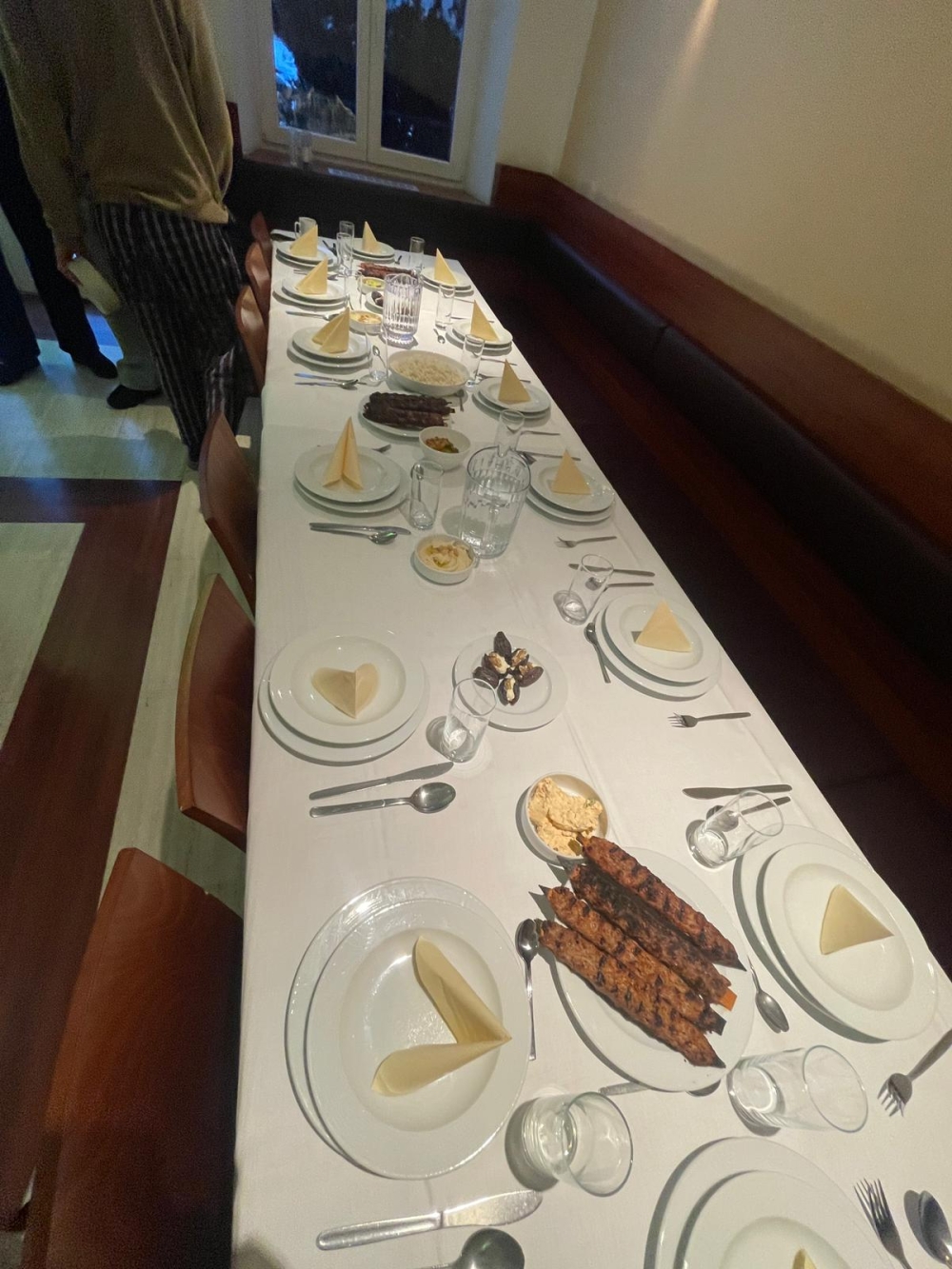 Das Iftar begann traditionell mit einer Dattel – verfeinert mit Mascarpone und Walnuss. Anschließend wurden Humus, verschiedene Dips, Fleischspieße, Linsensuppe, Reis und Couscous serviert. Den süßen Abschluss bildeten Schokomousse und Muffins.